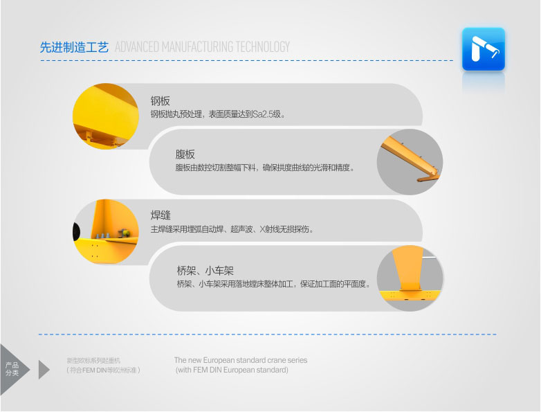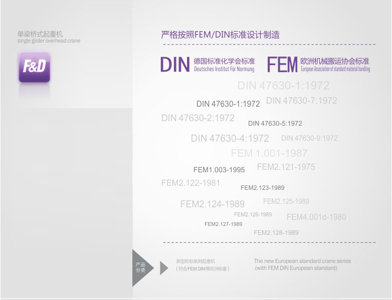 2、 該產(chǎn)品技術(shù)先進(jìn),設(shè)計(jì)按照國(guó)際標(biāo)準(zhǔn):DIN(德國(guó))、FEM(歐洲)、ISO(國(guó)際),具有剛性強(qiáng)、自重輕、結(jié)構(gòu)設(shè)計(jì)出眾等優(yōu)點(diǎn),能有效地節(jié)約廠房空間和投資成本,行走結(jié)構(gòu)特點(diǎn)獨(dú)特。